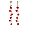 Piros rózsás fülbevaló ezüst színű láncokon, romantikus és elegáns megjelenéshez. Tökéletes választás különleges alkalmakra és hétköznapokra is