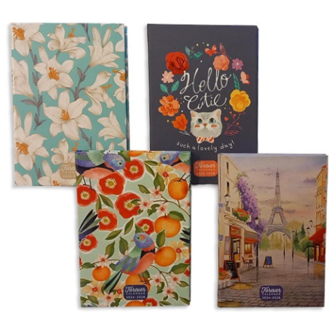 Határidőnapló öröknaptár Forever Calendar A/6 vegyes 102x148 mm Méret: 102x148 mm Terjedelem: 144 oldal (tartalmazza 4 év (2024-2028), mozgó és állandó ünnepeink listáját, névnapokat, órarendet, utazástervezőt) beosztás: heti beosztás Minta: 8 fé