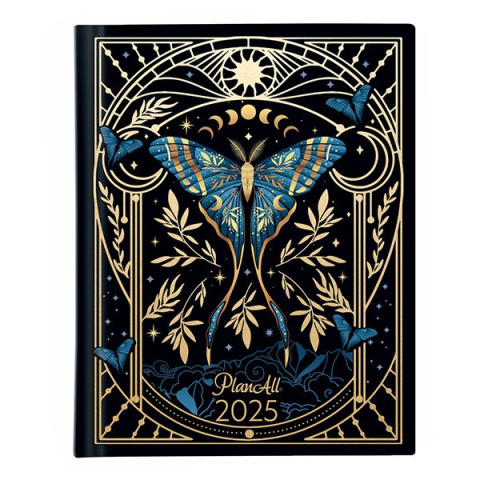 1 kép Határidőnapló PLANALL Mini Midnight A/6 heti keményfedelű aranyozott 2025.