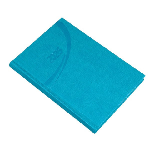 Határidőnapló REALSYSTEM Fashion A/5 heti fehér lapos türkiz 2026. Fashion típusú, merészen struktúrált felületű, magas minőségű műbőr borítás, vaknyomással emblémázható. Fehér papíros, cérnafűzött, A/5 heti beosztású, 144 oldalas, sarokperforált, j