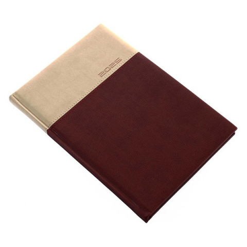 Határidőnapló REALSYSTEM Lux B/5 heti fehér lapos barna 2026. Hőre színeződő matt, varrott műbőr, borítással, présfólia és vaknyomással emblémázható. Fehér papíros, cérnafűzött, B/5 heti beosztású, 144 oldalas, sarokperforált, jelzőszalagot és térkép