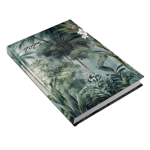 Határidőnapló REALSYSTEM Picture A/5 napi fehér lapos Tropical 2026. Különböző felületnemesítéssel, illetve fóliával bevont papírborító. Fehér papíros, cérnafűzött, A/5 napi beosztású, 352 oldalas, sarokperforált, jelzőszalagot és térképet tartalmaz.