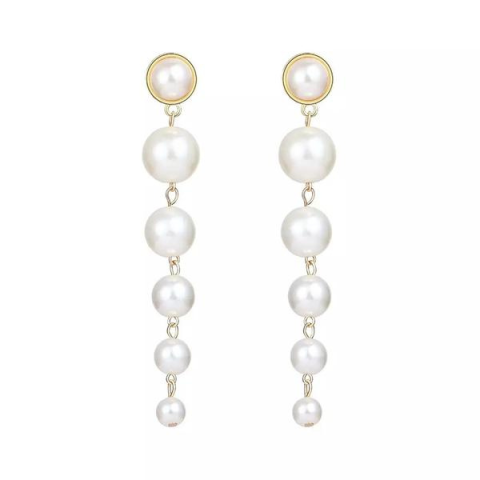 Hatgömbös lógós fülbevaló különböző méretű gyöngyökkel. Elegáns és lenyűgöző ékszer, amely minden alkalomra tökéletes választás