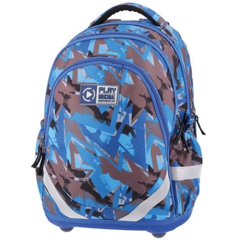 Hátitáska anatómiai Play Seven S absztrakt kék Ez a vízálló anyagból készült hátizsák magas minőségű poliészterből készült. A reflektív biztonsági sávok még sötétben is láthatóvá teszik. A párnázott vállpántok kényelmes viseletet biztosítanak, és a