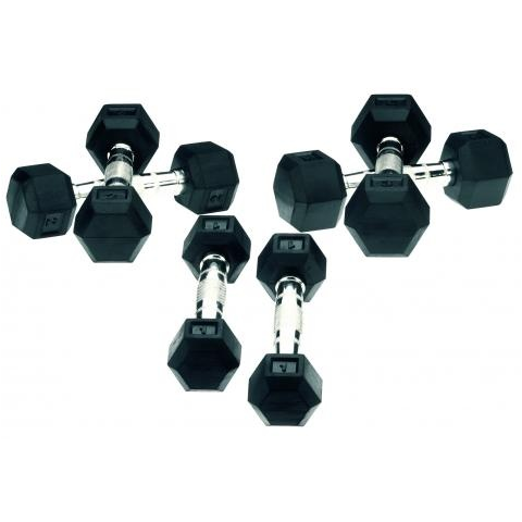 Hatszögletű gumírozott fix súlyzó 12-30 kg-ig, minden méretből (12kg, 14kg, 16kg, 18kg, 20kg, 22kg, 24kg, 26kg, 28kg, 30kg) 1 pár, összesen 10 pár / készlet.