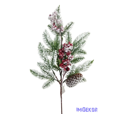 Havas fenyőág piros bogyóval és tobozzal dekorációs kellék árgrafikon