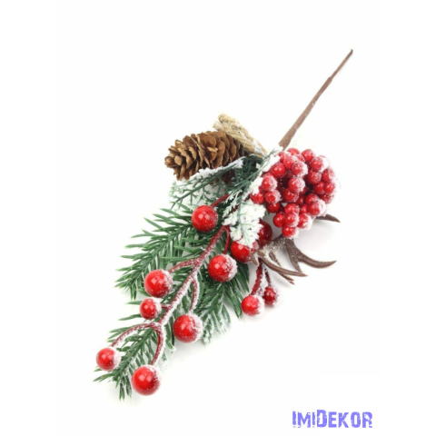 Havas fenyős téli pikk bogyóval tobozzal aggancsal 31cm dekorációs kellék 1 kép