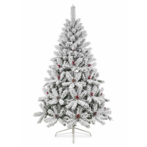 1 kép Havas Tündér műfenyő, Karácsonyfa tobozzal, bogyóval, 240 cm