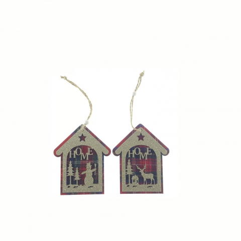Házikó akasztós dísz arany-zöld-piros 10x8cm