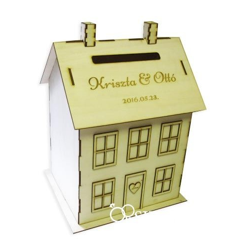 A Nászajándék gyűjtő házikó egy kreatív és praktikus ajándék ötlet, amely ideális választás az esküvőre készülő pároknak. Ez a gyönyörűen kidolgozott fa házikó tökéletes helyet biztosít a nászajándékok és jókívánságok gyűjtésére. Gyűjtsétek be stílusosan