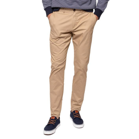 Ez a férfi vászon, hosszú nadrág egyenes szárú, comfort fit szabásával, cipzáras záródásával, keskeny övtartóival, svéd zsebével, gombos hátsó zsebeivel és kis márkajelzéseivel nagyszerű választás a rohanós hétköznapokra