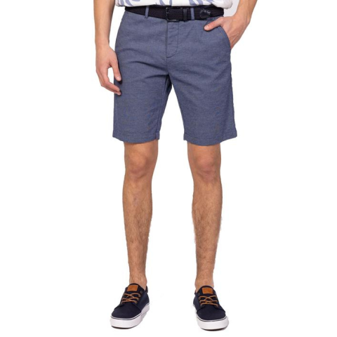 Férfi vászon, rövid nadrág egyenes szárral, comfort fit szabással, cipzáras záródással, keskeny övtartókkal. Elején svéd zsebbel, oldalában kis bevágott zsebbel, gombos hátsó zsebekkel, kis szövött márkajelzéssel. Elasztánnal kevert