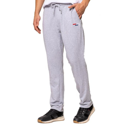 Férfi melegítőnadrág, magas pamut tartalmú anyagból, klasszikus szabással, húzózsinórral állítható, elasztikus derékkal, praktikus oldalzsebekkel, hátán díszzsebbel, elejé hímzett márkajelzéssel