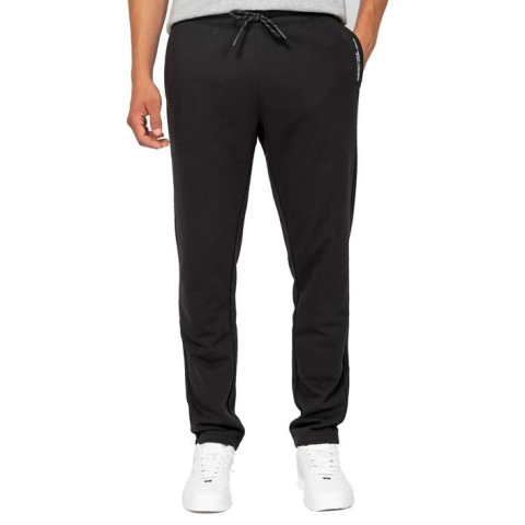 Férfi melegítőnadrág, kényelmes szabással, lefelé szűkülő szárral, húzózsinórral állítható, elasztikus derékkal, zsebekkel, hátán díszzsebbel, jól szellőző anyagból, kis márkajelzéssel az eleje zsebnél
