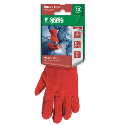 Szikraálló piros marhahasíték hegesztő védőkesztyű Hőszigetelő pamutbélés 15 cm-es mandzsetta 100°C kontakt hő ellen véd >15 sec Hőszigetelő pamutbélés 15 cm-es mandzsetta 100°C kontakt hő ellen véd >15 sec Olvadt fémcseppek elleni véde