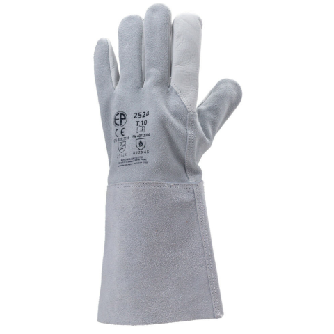 BŐR TENYERŰ HEGESZTŐKESZTYŰ: • színmarhabőr tenyerű hegesztőkesztyű • marhahasíték kézhát • 15 cm-es marhahasíték mandzsetta • MÉRET: 10-es • CSOMAGOLÁS: 60/12 • EU szabvány: EN420, EN388: 2121, EN407: 413X4X