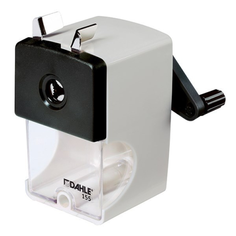 Hegyező asztali DAHLE 155 szürke Kézi ceruzahegyező kiváló minőségű vágópengékkel és állítható hegyformával Az aprított anyagok rendkívül kis mérete révén a hulladékgyűjtő tartályt ritkábban kell üríteni Kiváló minőségű acél vágópenge segít kiváló ered