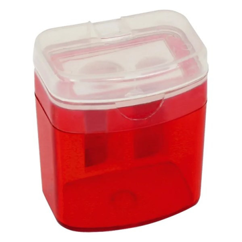 Hegyező FIORELLO GR-852-3 szögletes 2 lyukú műanyag, vegyes színekben; dupla lyukkal; tartályos; szögletes; fedéllel