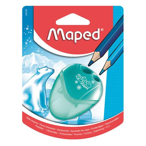Hegyező, kétlyukú, tartályos, MAPED I-Gloo, vegyes színek - műanyag test - fém pengével - modern forma - kétlyukú, két különböző ceruzavastagsághoz is használható - könnyen üríthető tartállyal - vegyes színekben, a szín nem választható Gy