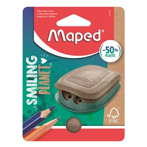 Hegyező, kétlyukú, tartályos, műanyag, FSC, MAPED "Smiling Planet