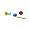 Áttetsző, színes műanyagból készült 1 lyukú hegyező, 8 mm-es ceruzákhoz, forgácsgyűjtő tartállyal. Méret: 4,5 x 3 cm.