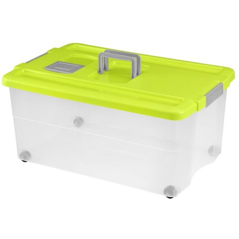 Teljes Heidrun Boxmania Átlátszó Tároló doboz 55L 60x40x28,5cm gurulós, Clippes tetővel termékleírás