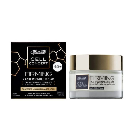 Indikáció, termék rövid szakmai leírása Helia-D cell concept Feszesítő + Ránctalanító éjszakai Krém 50 ml 45+Az orchidea őssejt kivonat javítja a bőr feszességét, rugalmasságát, ragyogását. Növeli a bőr kollagén és elasztin termelését, valamint a fibr