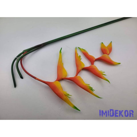 Heliconia / Rákollóvirág élethű gumis csüngős 86 cm - Narancsos