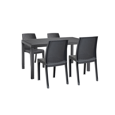 Hellda grafit rattan hatású kerti bútor szett 4+1 személyes 🏡 A Hellda 4+1 kerti bútor szett tökéletes választás, ha kényelmes, stílusos és könnyen kezelhető kültéri bútort keresel. Élvezd a szabadban töltött időt a családdal és barátokkal ezen a idő...