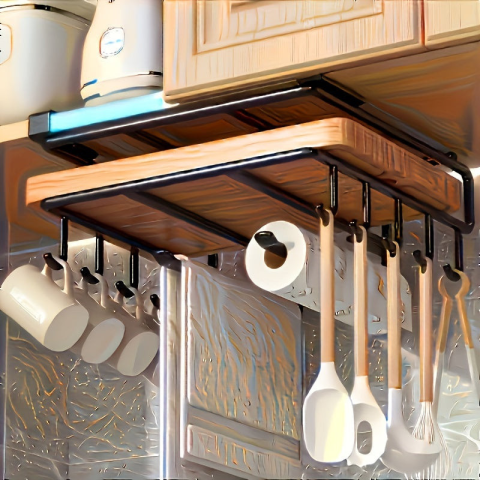 1 kép Helytakarékos konyhai kampós állvány vágódeszkával, fedéllel és szekrényajtóra akasztható kampókkal