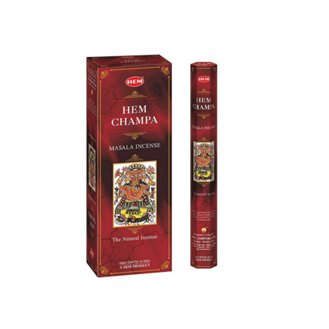 A HEM Champa füstölő illata nagyon meleg, fás, édes és enyhén fűszeres, virágos, amely gazdag és erős, ugyanakkor nem túl elsöprő. A Champa füstölő gazdag növényi kivonatokból, gyantákból és olajokból készült. Indiában a virágos illatot leginkább az istentisztelethez és a felajánlásokhoz kötik, ezért széles körben használják különféle vallási hagyományok és rituálék során.