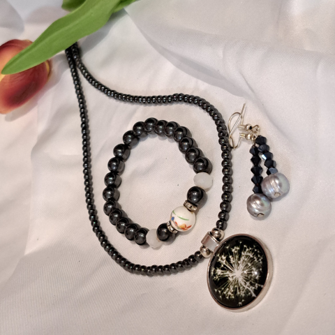 1 kép Hematit és Magnetit, nyaklánc, fülbevaló és karkötő .