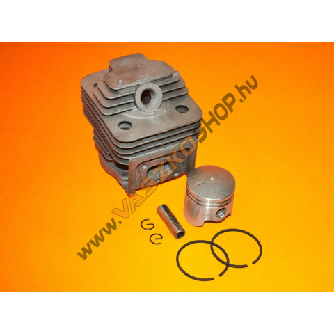 Kínai fűkasza hengerszett , dugattyú készlet Cikkszám: 07-12014 , MC0001 Méretek: Dugattyú: Ø 40 mm Dugó magasság: 40 mm Csapszeg: Ø 10 mm Furat távolságok: 47 mm x 50 mm Szett tartalma: Henger+Dugattyú+2 db dugattyú gyűrű+csapszeg+ 2 db csapszeg seeger