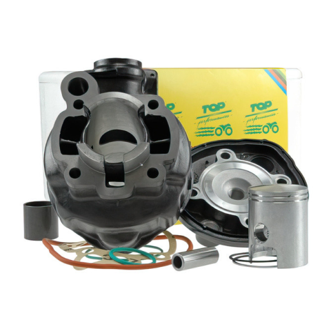 Cylinder Kit Top Performances Trophy 50cc Minarelli AM6A Top Performances Trophy 50cc Minarelli AM6 egy rendkívül tartós, 50cc öntöttvas henger, amelyet Olaszországban gyártottak.A készlet tartalmazza:50cc öntöttvas henger, 5 átvitel porttal és egyszerű o