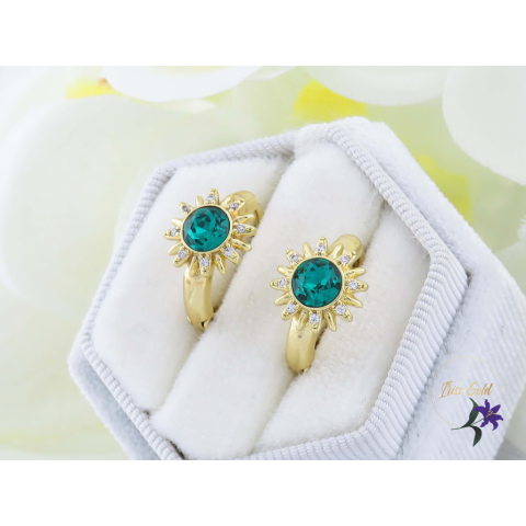 1 kép Henia antiallergén zöld kristályköves virág fülbevaló-14K