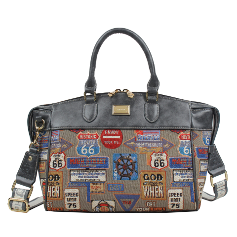 A Henney Bear MEDAL PLATE GREY válltáska, kézitáska karakteres gobelin mintájával és szürke műbőr részleteivel a road trip életérzését hozza el. Praktikus kialakítása és egyedi stílusa ideális választássá teszi a hétköznapokra és utazásokhoz is.