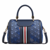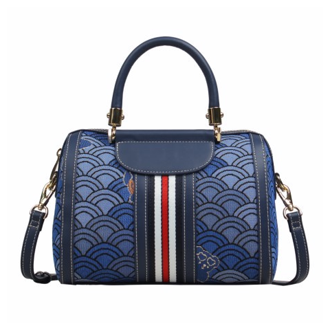 A Henney Bear BLUE WAVE válltáska, kézitáska a klasszikus eleganciát ötvözi a modern, hullámmintás gobelin szövettel. A kék árnyalatok harmóniája és a piros-fehér díszcsík dinamikus megjelenést kölcsönöz a táskának, amely ideális választás a mindennapok stílusos kiegészítőjeként.