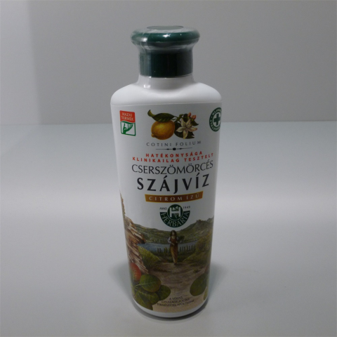A Cserszömörcés szájvíz (citrom ízesítéssel) cserszömörce és kakukkfű kivonatát tartalmazza. Gyógynövény-hatóanyagai által csökkenti a fogíny gyulladását és vérzését. A szájvízzel történő öblögetés megfelelően egészíti ki a fogtisztítást és szájhigién