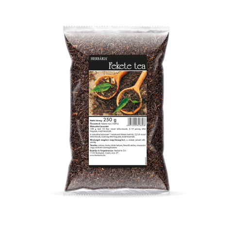 Összetevők: Fekete tea (100%). Alkalmazási javaslat: 100 g teát 10 liter vízzel leforrázunk, 5-10 percig állni hagyjuk, majd leszűrjük. A csészébe helyezett 1 teáskanál fekete teát kb. 2,5 dl vízzel leforrázzuk, 5 percig állni hagyjuk, majd leszűrjük.