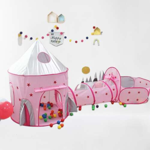 Hercegnős Kastély, 3 részes, Játszósátor +Színes labda hálóban 60 darab játszósátor, alagút 1 kép