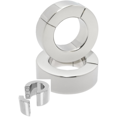 Here súly acélból -mágneses.Here súly-rozsdamentes orvosi acélból készült.Szét lehet szedni-mágneses egy cikkelye.Belső átmérő:3,5cm.Súlya:kb.420g