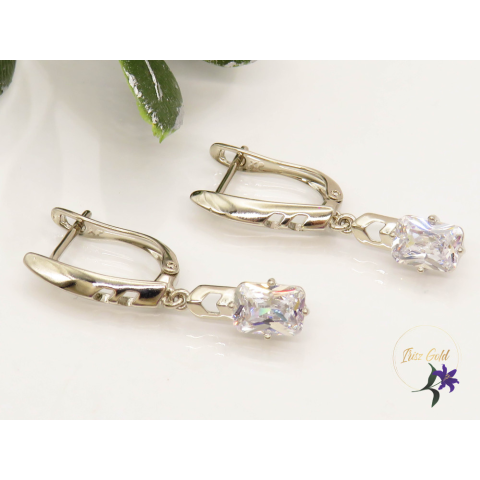 Goldfilled white csüngős fülbevaló fehér cirkóna kővel Szin: rodium Méret: 30x6 mm Kő: 7x4mm