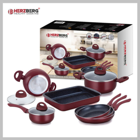 Teljes Herzberg 10 részes márvány bevonatú edénykészlet - bordó HG-9016BR termékleírás