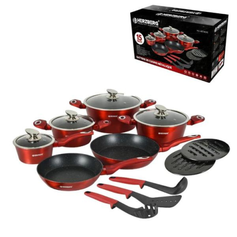 1 kép Herzberg 15 részes márványbevonatú edénykészlet (fényes piros) HG-METRD15