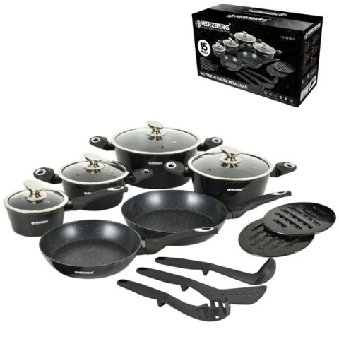 Teljes Herzberg 15 részes márványbevonatú edénykészlet metál fekete HG-METBK15 termékleírás