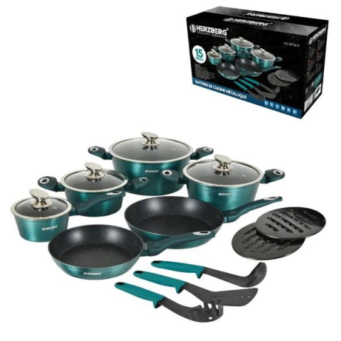 Teljes Herzberg 15 részes márványbevonatú edénykészlet metál kék HG-METBL15 termékleírás