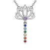 Gyönyörű ezüst színű 7 csakra medál, lótuszvirág mintával és a csakrák színeivel. Tökéletes kiegészítő a harmónia és spiritualitás jegyében