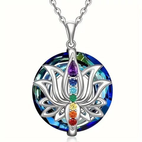 Színes, hét csakrát szimbolizáló medálos nyaklánc, amely energiát és harmóniát sugároz. Kiváló minőségű, ezüst színű lánccal