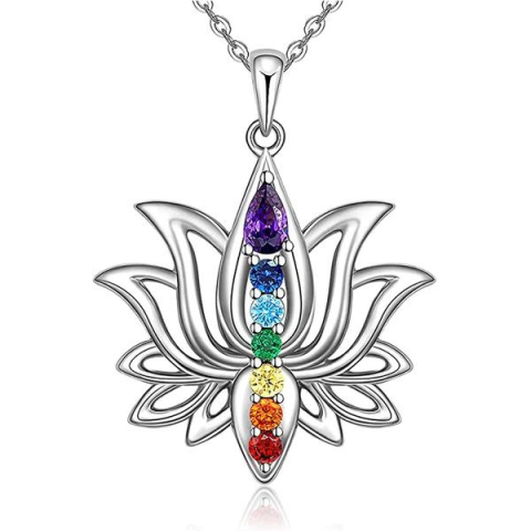 Ez a 7 Csakra nyaklánc gyönyörű virág alakú medállal és a 7 csakra köveivel díszítve tökéletes ajándék a spiritualitás és egyensúly kedvelőinek