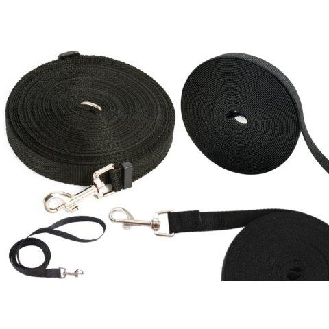 Hevederszalagból készült, 5 m-es tréningpóráz kutyáknak – fekete nyakörv, póráz, hám kutyáknak 1 kép
